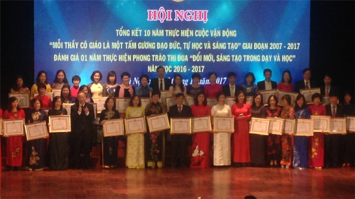 Sáng 08/11/2017, Sở GD-ĐT Hà Nội đã long trọng tổ chức Hội nghị Tổng kết 10 năm cuộc vận động “Mỗi thầy cô giáo là một tấm gương đạo đức, tự học và sáng tạo” giai đoạn 2007-2017 và đánh giá 1 năm thực hiện phong trào thi đua “Đổi mới, sáng tạo trong dạy và học” , trao giải thưởng “Nhà giáo Hà Nội tâm huyết, sáng tạo” lần thứ Nhất năm học 2016-2017.